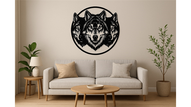 תמונת מתכת זאבים בעיגול