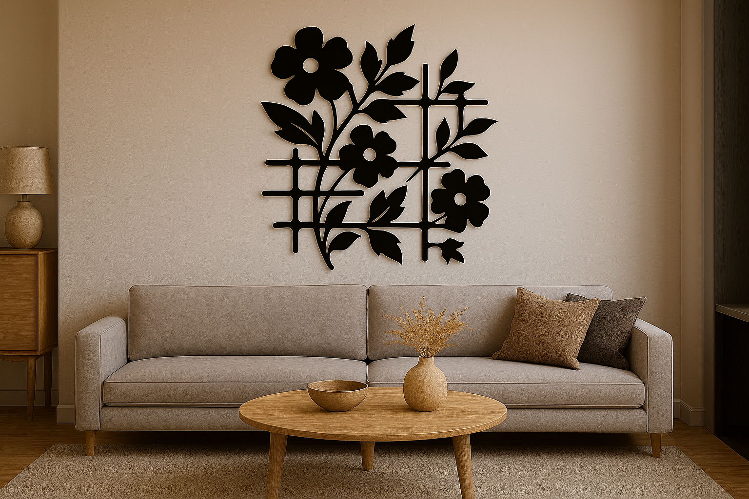 תמונת מתכת מאלומיניום איכותי קל משקל עם קווי מתאר עדינים היוצרים אומנות מתכת פרחונית , בעבודת חיתוך לייזר מדויקת עם פרטים חדים ומוקפדים. הקווים הנקיים והעיצוב המודרני משתלבים בקלות בחללים שונים - סלון, חדר שינה או משרד. ניתן להוסיף תאורת LED אחורית ליצירת עומק ואווירה מיוחדת.