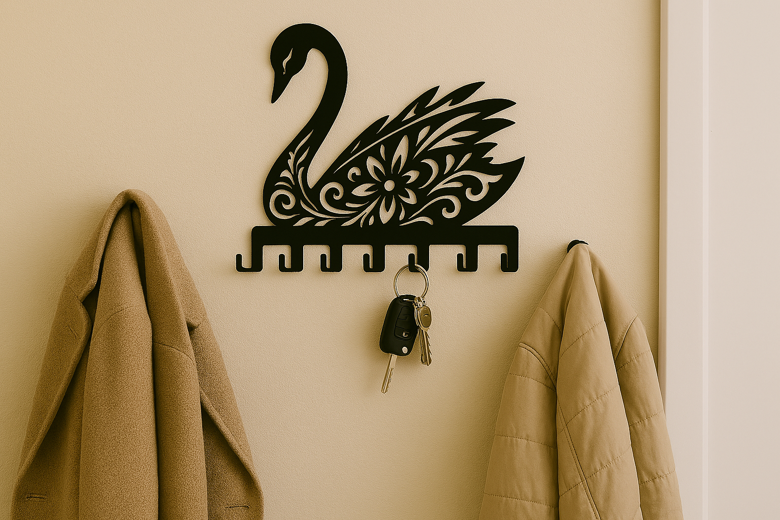 מחזיק מפתחות מעוצב מאלומיניום איכותי קל משקל בשילוב ברבור מרשים עם אלמנטים עיצוביים, בעבודת חיתוך לייזר מדויקת עם פרטים חדים ומוקפדים. הקווים הנקיים והעיצוב המודרני משתלבים בקלות בחלל. ניתן להוסיף תאורת LED אחורית ליצירת עומק ואווירה מיוחדת.