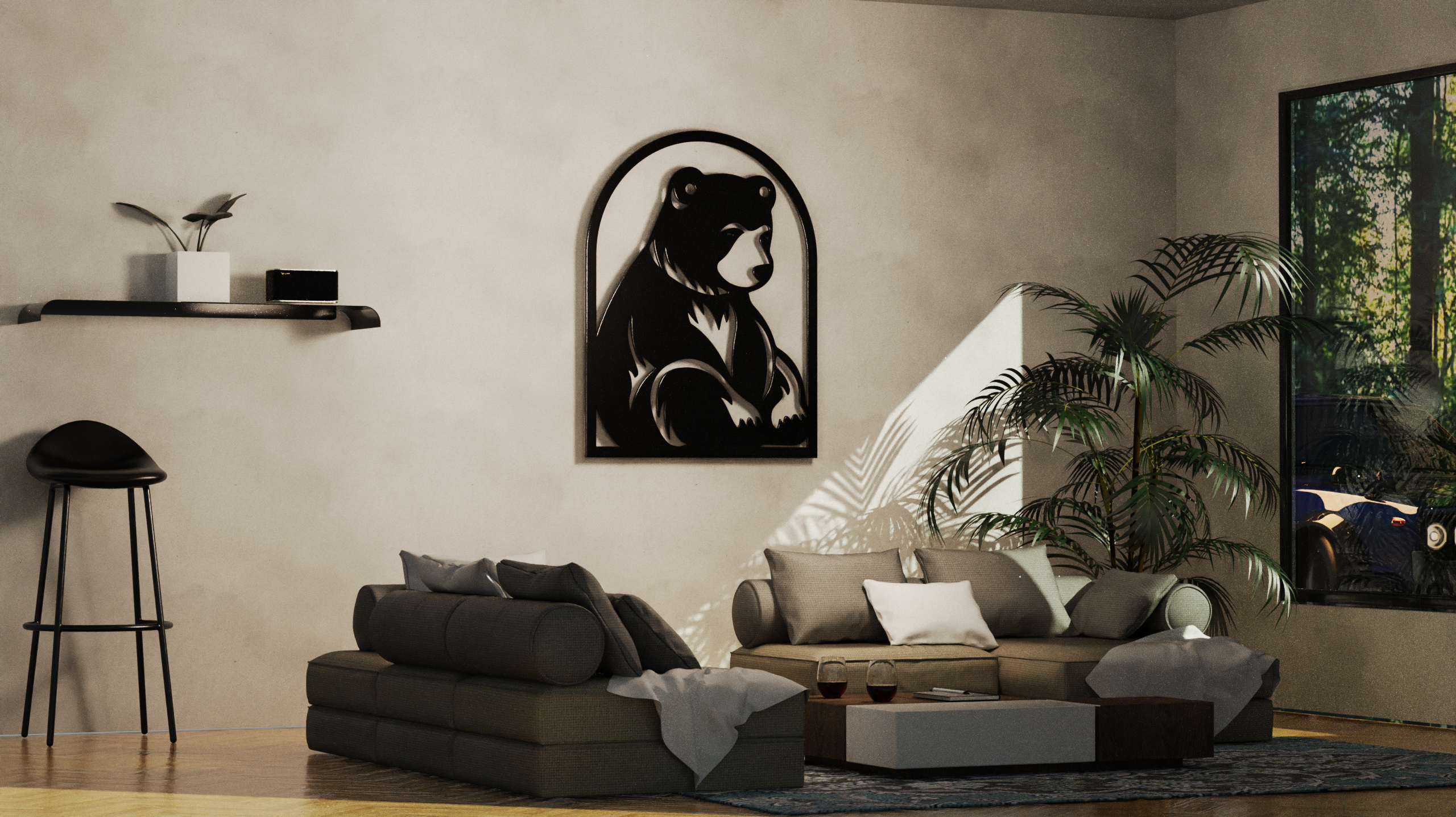 תמונת מתכת מאלומיניום איכותי קל משקל בעיצוב דוב נח בתוך מסגרת, בעבודת חיתוך לייזר מדויקת עם פרטים חדים ומוקפדים. הקווים הנקיים והעיצוב המודרני משתלבים בקלות בחללים שונים - סלון, חדר שינה או משרד. ניתן להוסיף תאורת LED אחורית ליצירת עומק ואווירה מיוחדת.