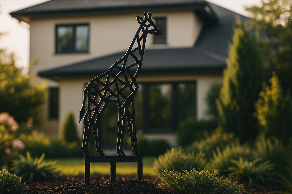 דמות ג'ירפה מאלומיניום איכותי קל משקל לגינה בעיצוב גיאומטרי מרשים. פריט נוי ייחודי שמעניק תחושת חיות והרמוניה בנוף הירוק. קל לשילוב בערוגות, מדשאות או ליד שבילי גינה - מוסיף מראה דקורטיבי מיוחד לכל חלל חוץ.