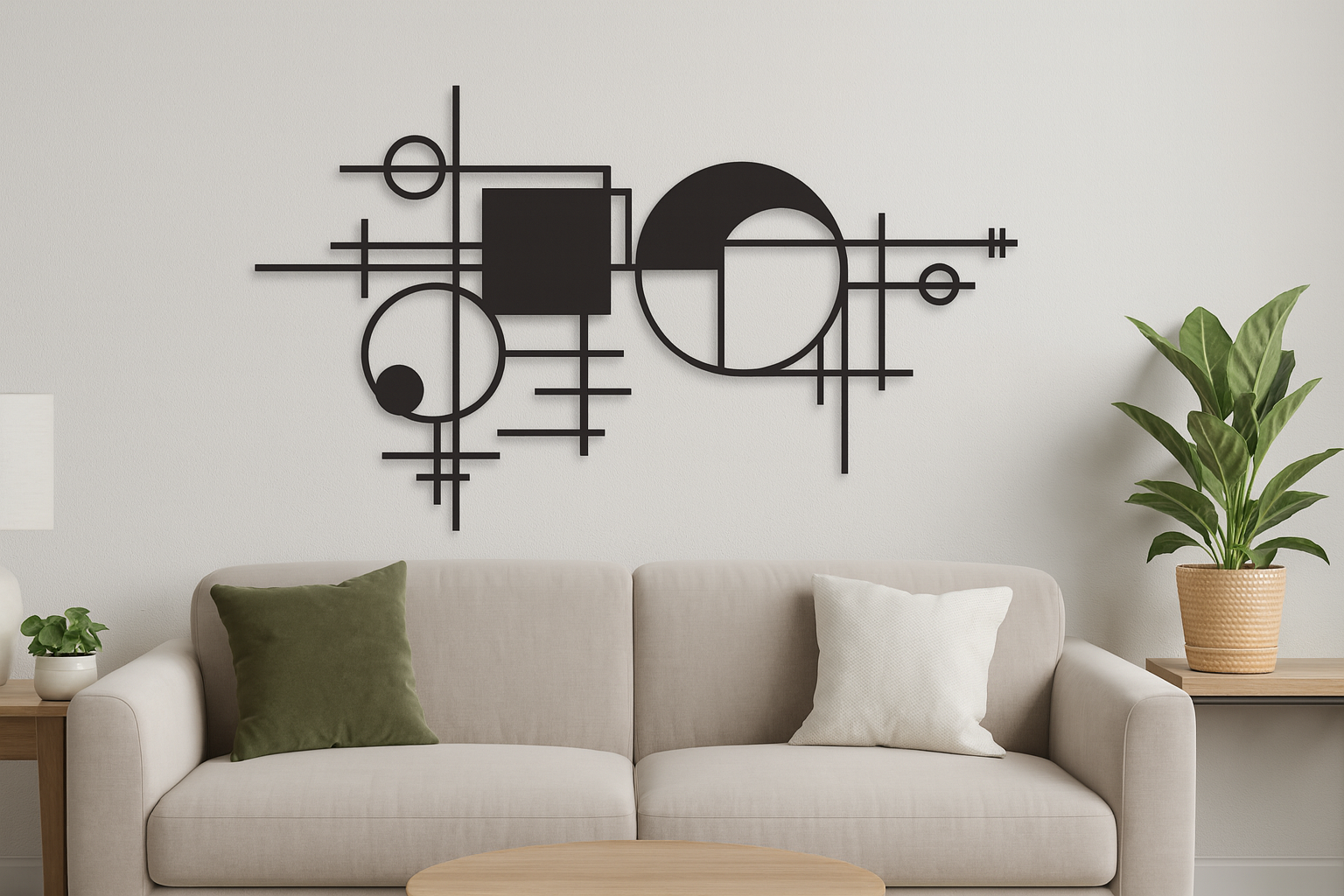תמונת מתכת מאלומיניום איכותי קל משקל עם קווי מתאר עדינים היוצרים אומנות גיאומטרית, בעבודת חיתוך לייזר מדויקת עם פרטים חדים ומוקפדים. הקווים הנקיים והעיצוב המודרני משתלבים בקלות בחללים שונים - סלון, חדר שינה או משרד. ניתן להוסיף תאורת LED אחורית ליצירת עומק ואווירה מיוחדת.