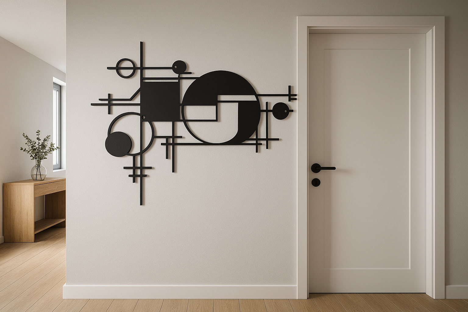 תמונת מתכת מאלומיניום איכותי קל משקל עם קווי מתאר עדינים היוצרים אומנות גיאומטרית, בעבודת חיתוך לייזר מדויקת עם פרטים חדים ומוקפדים. הקווים הנקיים והעיצוב המודרני משתלבים בקלות בחללים שונים - סלון, חדר שינה או משרד. ניתן להוסיף תאורת LED אחורית ליצירת עומק ואווירה מיוחדת.