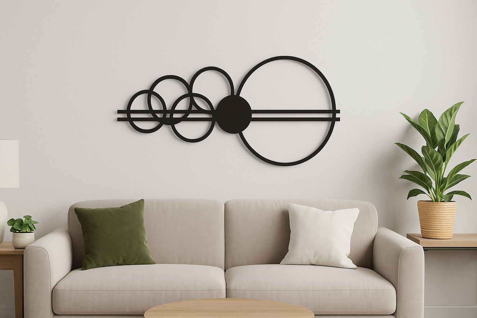 תמונת מתכת מאלומיניום איכותי קל משקל עם קווי מתאר עדינים היוצרים אומנות גיאומטרית, בעבודת חיתוך לייזר מדויקת עם פרטים חדים ומוקפדים. הקווים הנקיים והעיצוב המודרני משתלבים בקלות בחללים שונים - סלון, חדר שינה או משרד. ניתן להוסיף תאורת LED אחורית ליצירת עומק ואווירה מיוחדת.