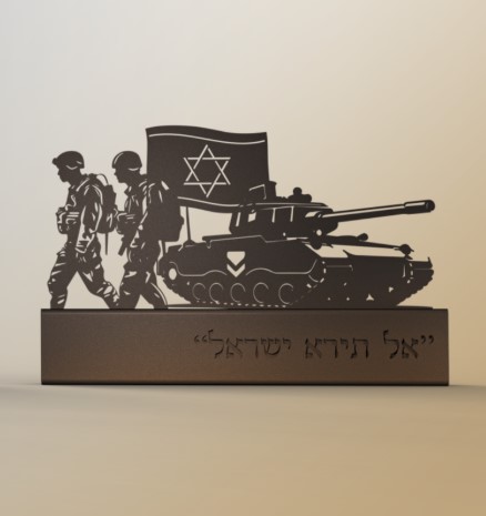 חנוכיה מעוצבת בחיתוך לייזר, הנושאת זיכרון משמעותי לאירועי ה-7.10.2023, כסמל לעוצמה, גבורה ורוח ישראלית-יהודית איתנה. החנוכיה כוללת את הכיתוב "אל תירא", לצד מוטיבים של טנק, חיילים ודגל ישראל, היוצרים חיבור חזק לערכים, למורשת ולגאווה הלאומית. העיצוב המדויק משלב אלגנטיות ויופי, ומתאים להצגה בסלון, חדר עבודה או מבואה.