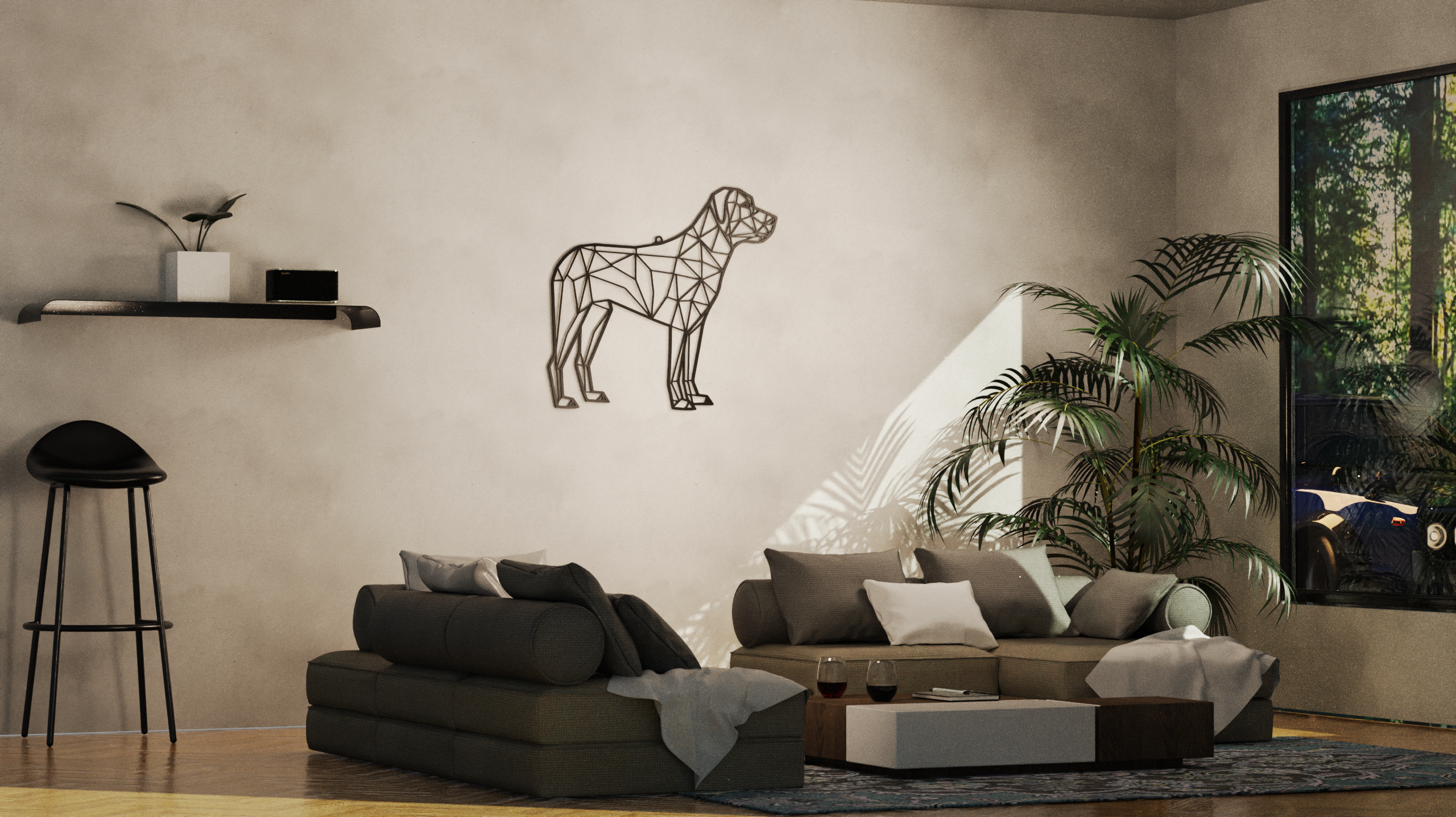 תמונת מתכת מאלומיניום איכותי קל משקל בעיצוב כלב גיאומטרי , בעבודת חיתוך לייזר מדויקת עם פרטים חדים ומוקפדים. הקווים הנקיים והעיצוב המודרני משתלבים בקלות בחללים שונים - סלון, חדר שינה או משרד. ניתן להוסיף תאורת LED אחורית ליצירת עומק ואווירה מיוחדת.