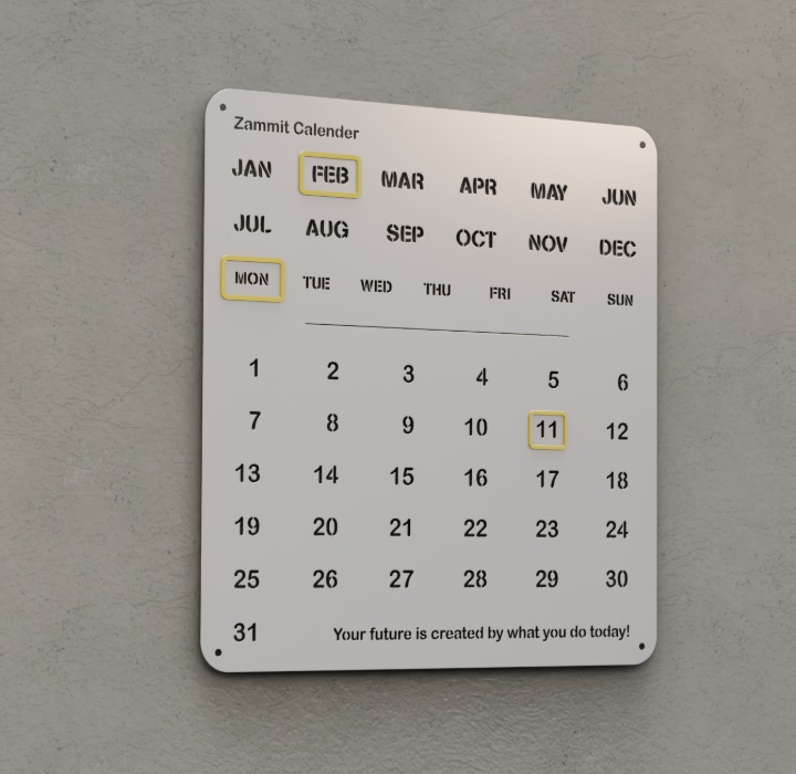 לוח שנה עשוי מתכת איכותית בחיתוך לייזר מדויק, עם כיתוב אישי לבחירה - שם, הקדשה או משפט השראה. כולל סט מגנטים לסימון החודש והיום, לשימוש רב-שנתי בלי צורך בהחלפה שנתית. מיועד לתלייה על קיר, ומשלב שימושיות עם מראה ייחודי לבית, למשרד או לחנות. מתנה מושלמת לעובדים, לקוחות, משפחה וחברים – שילוב מדויק בין עיצוב ושימושיות לאורך זמן. אפשרות הוספת לוגו חברה, הקדשה אישית או שם.