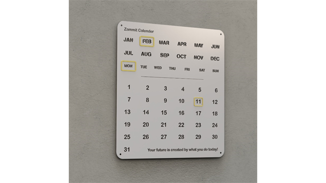 לוח שנה ממתכת עם הקדשה אישית בחיתוך לייזר