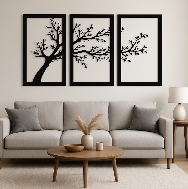 פריט עיצוב ייחודי מאלומיניום איכותי קל משקל בחיתוך לייזר מדויק, המציג דגם מרשים בשלושה חלקים היוצרים עץ עם עלים. העיצוב הנקי והאלגנטי מתאים לחללים מודרניים וקלאסיים, ומשתלב בסלון, חדר עבודה או מבואה. ניתן לשדרג עם תאורת LED אחורית ליצירת מראה מרשים במיוחד.