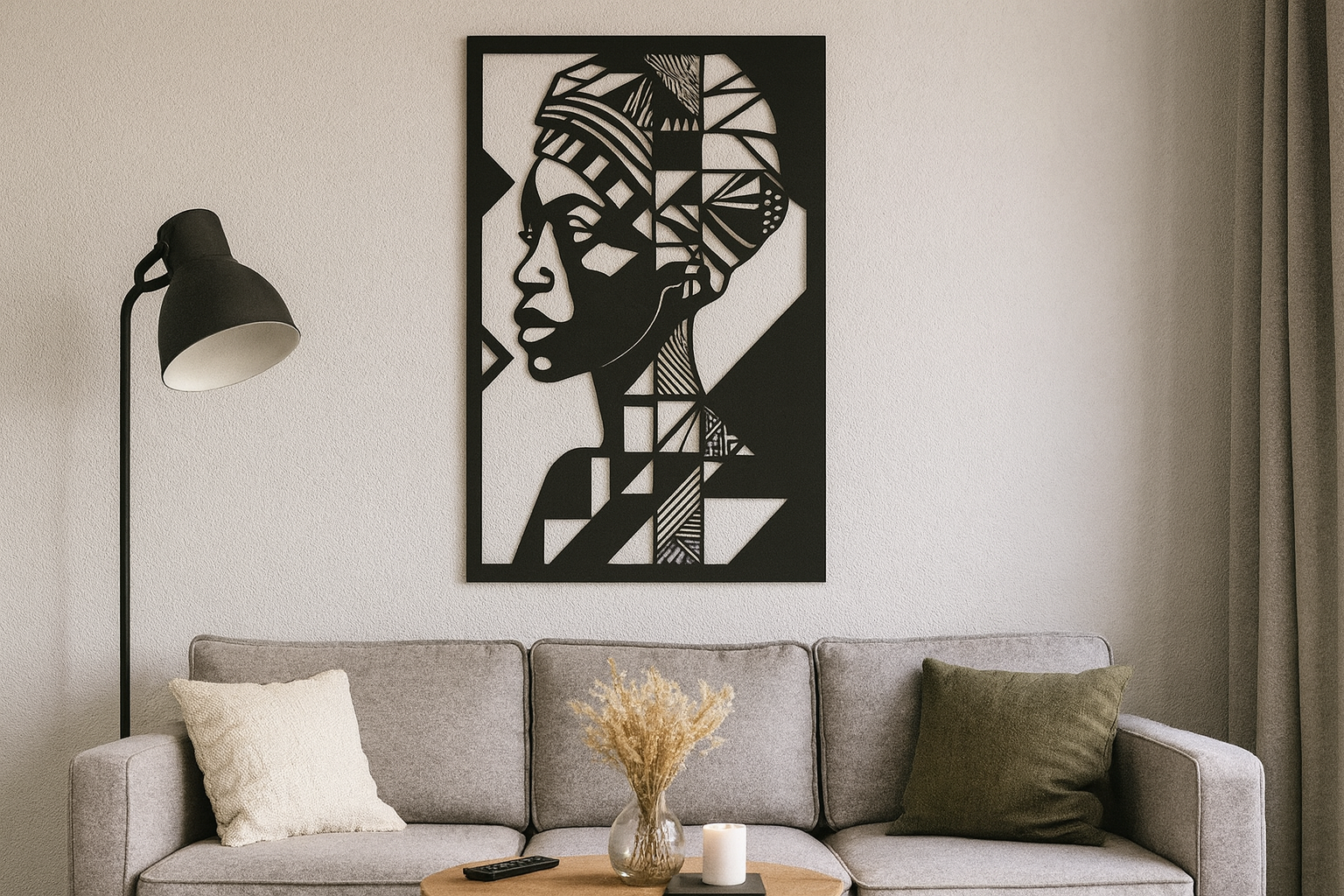 פריט עיצוב ייחודי מאלומיניום איכותי קל משקל בחיתוך לייזר מדויק, המציג פנים גיאומטריות אפריקה . העיצוב הנקי והאלגנטי מתאים לחללים מודרניים וקלאסיים, ומשתלב בסלון, חדר עבודה או מבואה. ניתן לשדרג עם תאורת LED אחורית ליצירת מראה מרשים במיוחד.