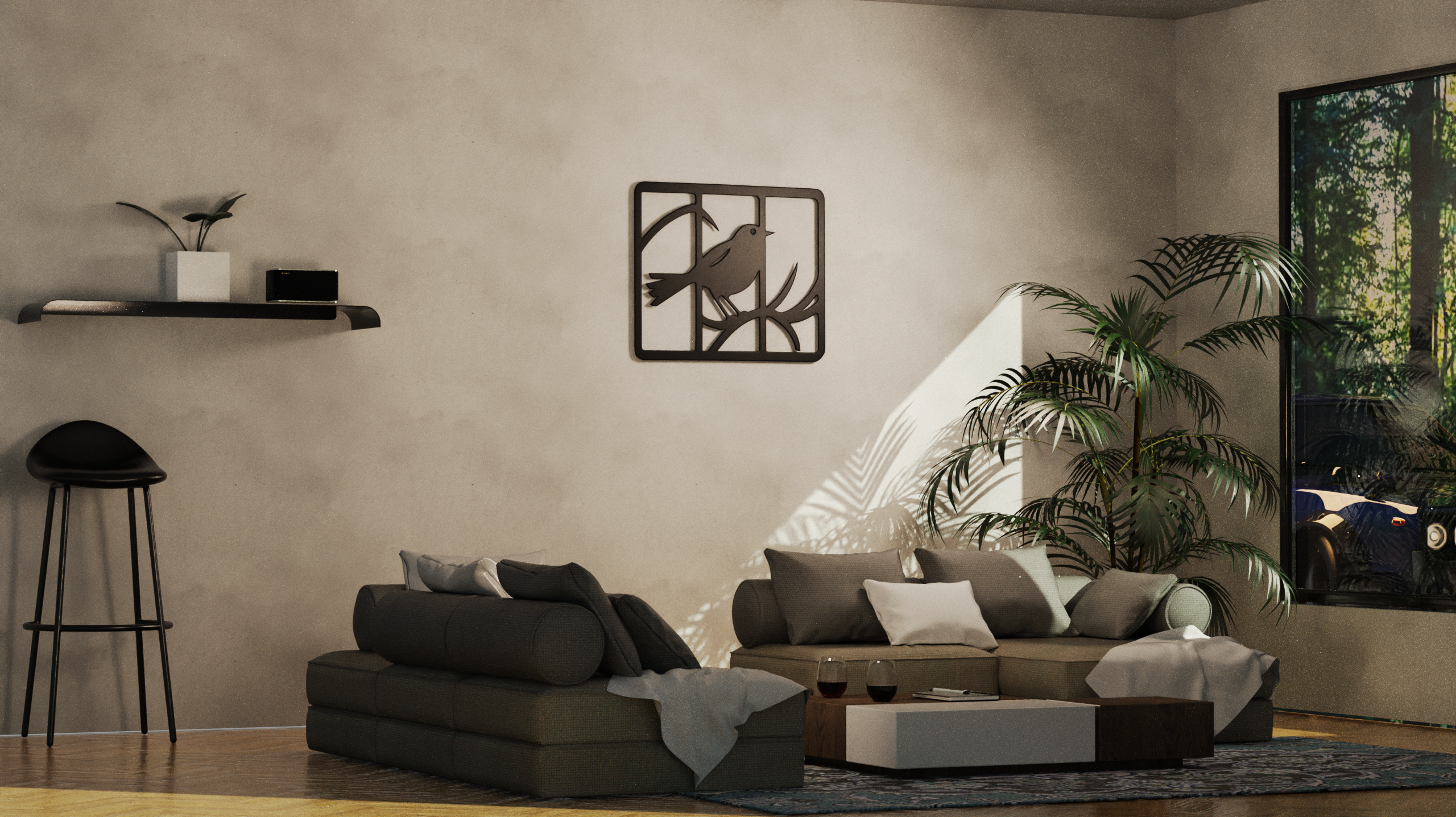 תמונת מתכת מאלומיניום איכותי קל משקל בעיצוב ציפור במסגרת, בעבודת חיתוך לייזר מדויקת עם פרטים חדים ומוקפדים. הקווים הנקיים והעיצוב המודרני משתלבים בקלות בחללים שונים - סלון, חדר שינה או משרד. ניתן להוסיף תאורת LED אחורית ליצירת עומק ואווירה מיוחדת.