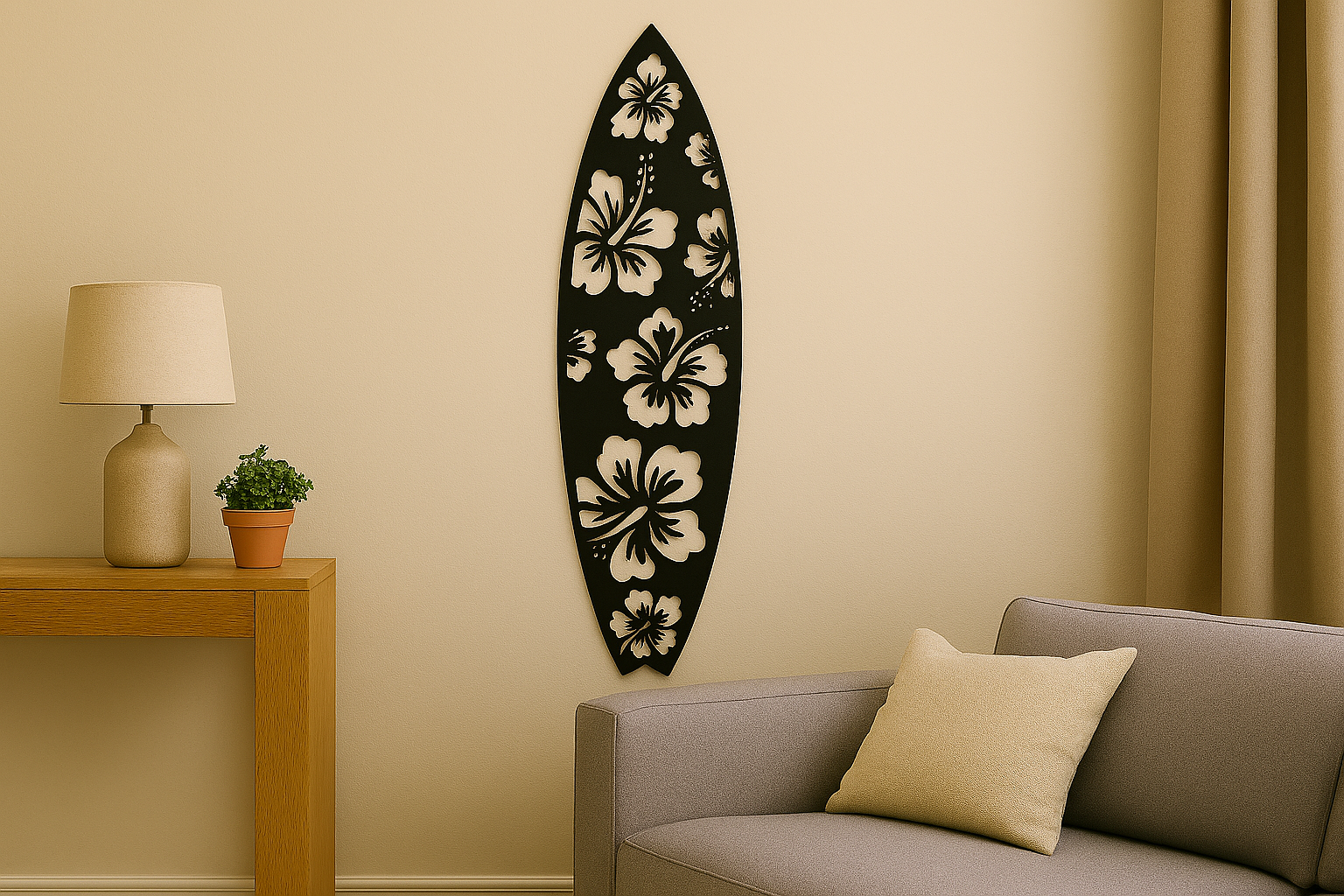תמונת מתכת מאלומיניום איכותי קל משקל בעיצוב גלשן קיר עם אלמנט פרחים, בעבודת חיתוך לייזר מדויקת עם פרטים חדים ומוקפדים. הקווים הנקיים והעיצוב המודרני משתלבים בקלות בחללים שונים - סלון, חדר שינה או משרד. ניתן להוסיף תאורת LED אחורית ליצירת עומק ואווירה מיוחדת.