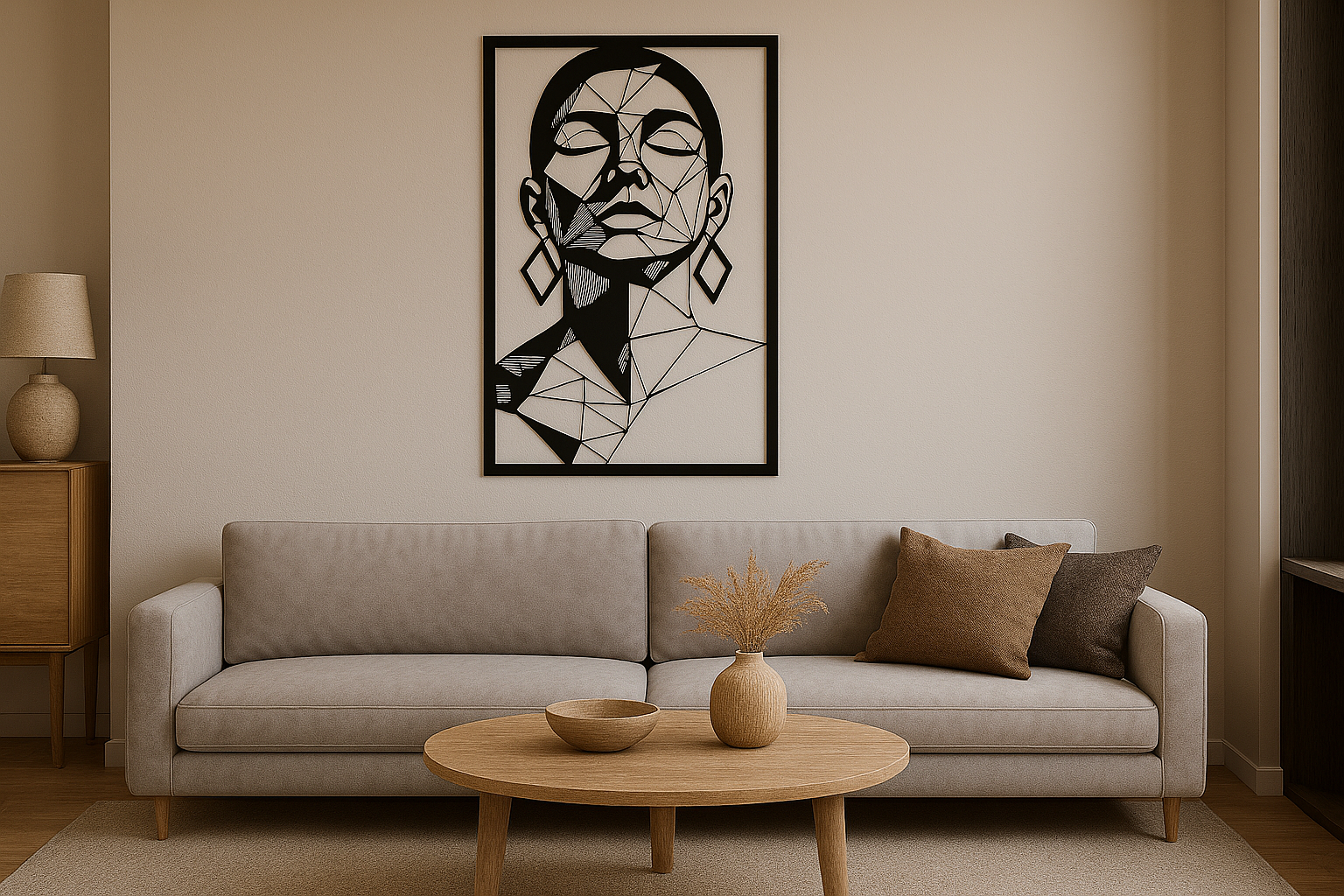 תמונת מתכת מאלומיניום איכותי קל משקל עם קווי מתאר עדינים היוצרים דמות נשית גיאומטרית , בעבודת חיתוך לייזר מדויקת עם פרטים חדים ומוקפדים. הקווים הנקיים והעיצוב המודרני משתלבים בקלות בחללים שונים - סלון, חדר שינה או משרד. ניתן להוסיף תאורת LED אחורית ליצירת עומק ואווירה מיוחדת.