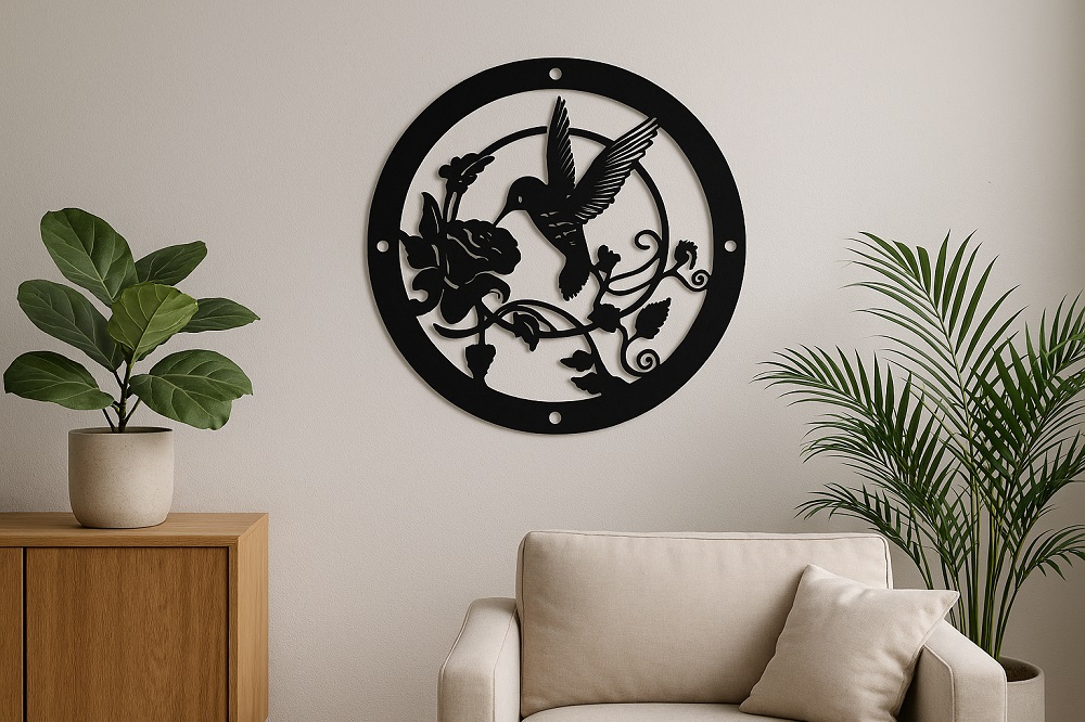 פריט עיצוב ייחודי מאלומיניום איכותי קל משקל בעבודת חיתוך לייזר, מסגרת עגולה עם ציפור יונק הדבש על פרח. העיצוב המדויק והפרטים העדינים מתאימים להשלמת האווירה בכל חלל - מודרני או קלאסי. ניתן לשדרג עם תאורת LED אחורית להדגשת הקווים והוספת עומק ועניין ויזואלי.