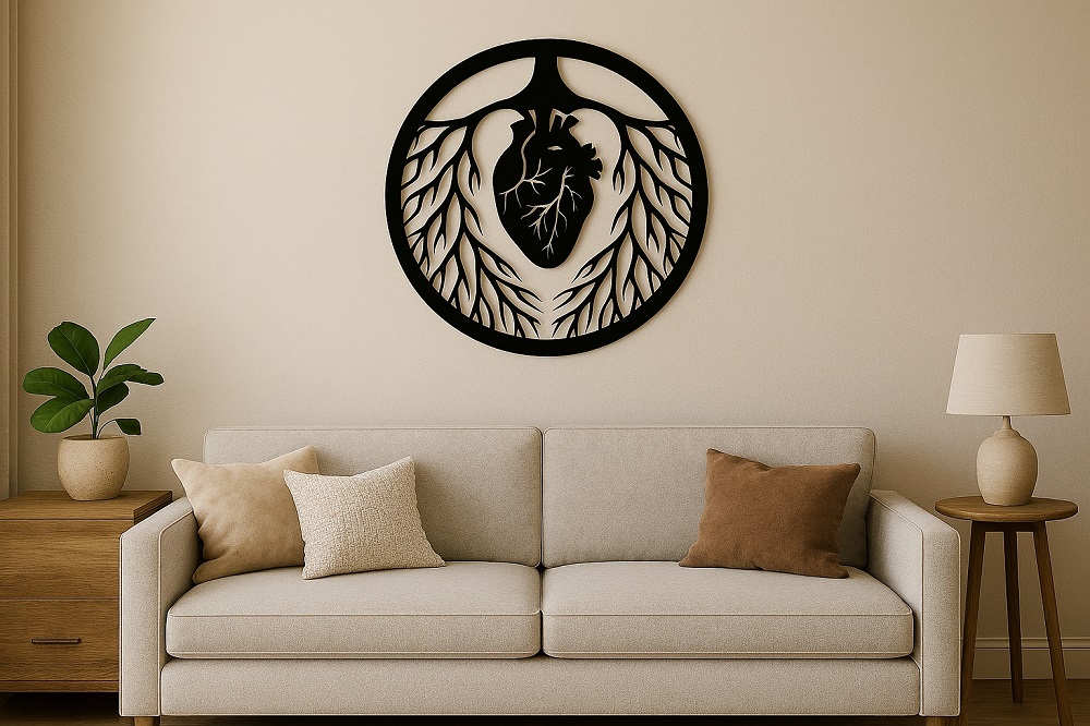 פריט עיצוב ייחודי מאלומיניום איכותי קל משקל בעבודת חיתוך לייזר, המציג דגם מדהים של לב הצומח מתוך שורשי עץ. העיצוב המדויק והפרטים העדינים מתאימים להשלמת האווירה בכל חלל - מודרני או קלאסי. ניתן לשדרג עם תאורת LED אחורית להדגשת הקווים והוספת עומק ועניין ויזואלי.