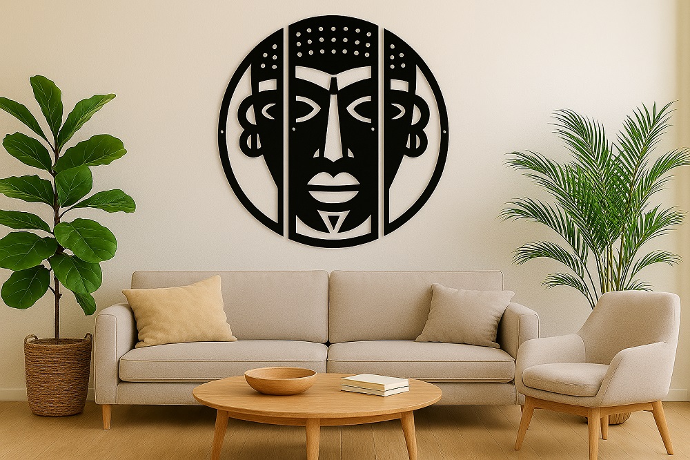 תמונת מתכת מאלומיניום איכותי קל משקל של עיגול עם דמות אפריקנית שבטית, בעבודת חיתוך לייזר מדויקת עם פרטים חדים ומוקפדים. הקווים הנקיים והעיצוב המודרני משתלבים בקלות בחללים שונים - סלון, חדר שינה או משרד. ניתן להוסיף תאורת LED אחורית ליצירת עומק ואווירה מיוחדת.