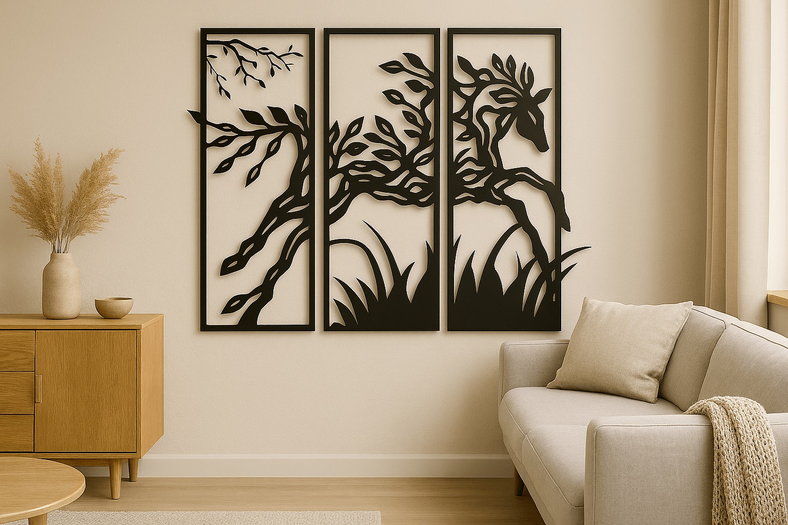 פריט עיצוב ייחודי מאלומיניום איכותי קל משקל בעבודת חיתוך לייזר, המציג דגם מיוחד של סוס מרשים מענפים ועלים. העיצוב המדויק והפרטים העדינים מתאימים להשלמת האווירה בכל חלל - מודרני או קלאסי. ניתן לשדרג עם תאורת LED אחורית להדגשת הקווים והוספת עומק ועניין ויזואלי.