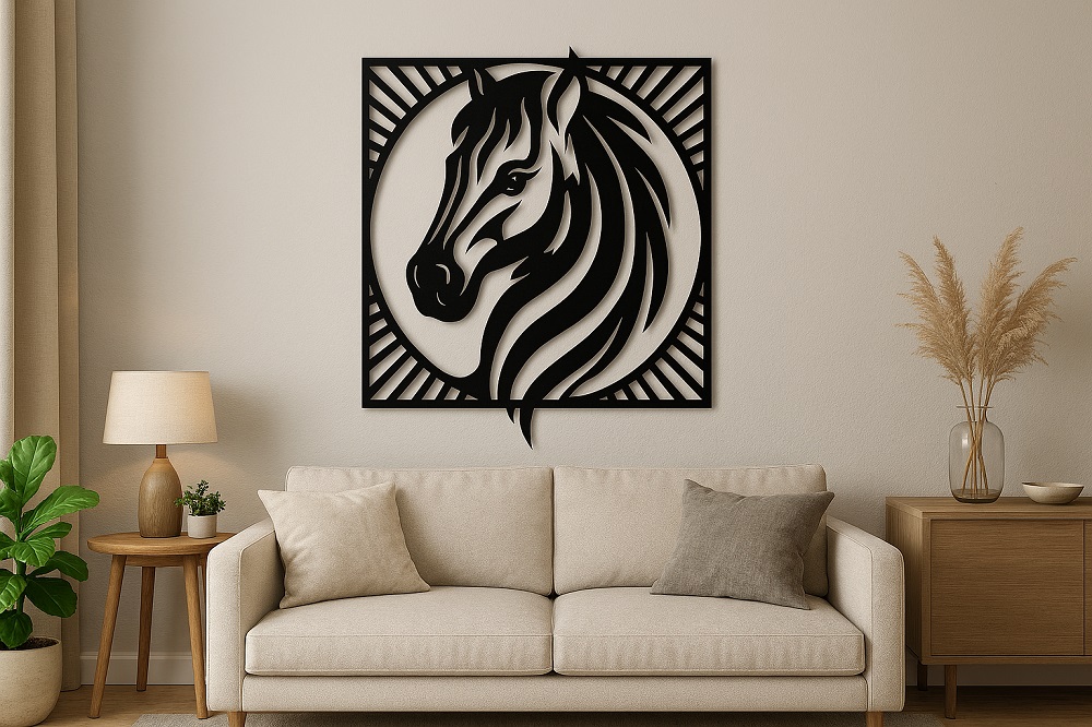 תמונת מתכת מאלומיניום איכותי קל משקל בעיצוב מרהיב ומרשים של סוס אצילי במסגרת עגולה, בעבודת חיתוך לייזר מדויקת עם פרטים חדים ומוקפדים. הקווים הנקיים והעיצוב המודרני משתלבים בקלות בחללים שונים - סלון, חדר שינה או משרד. ניתן להוסיף תאורת LED אחורית ליצירת עומק ואווירה מיוחדת.