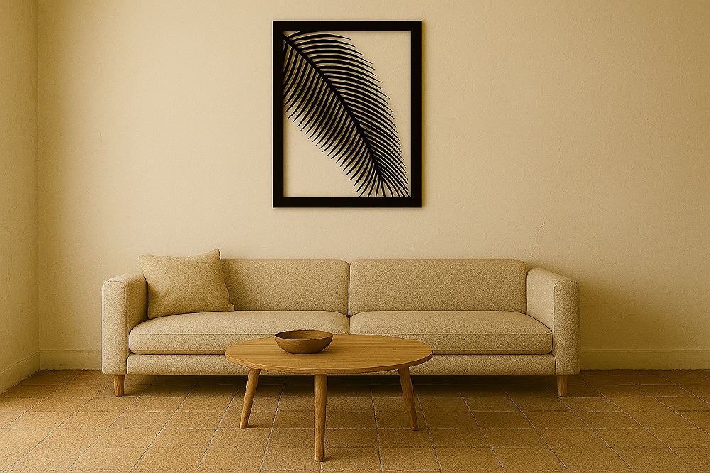 תמונת מתכת מאלומיניום איכותי קל משקל עם עלה מרשים במסגרת, בעבודת חיתוך לייזר מדויקת עם פרטים חדים ומוקפדים. הקווים הנקיים והעיצוב המודרני משתלבים בקלות בחללים שונים - סלון, חדר שינה או משרד. ניתן להוסיף תאורת LED אחורית ליצירת עומק ואווירה מיוחדת.