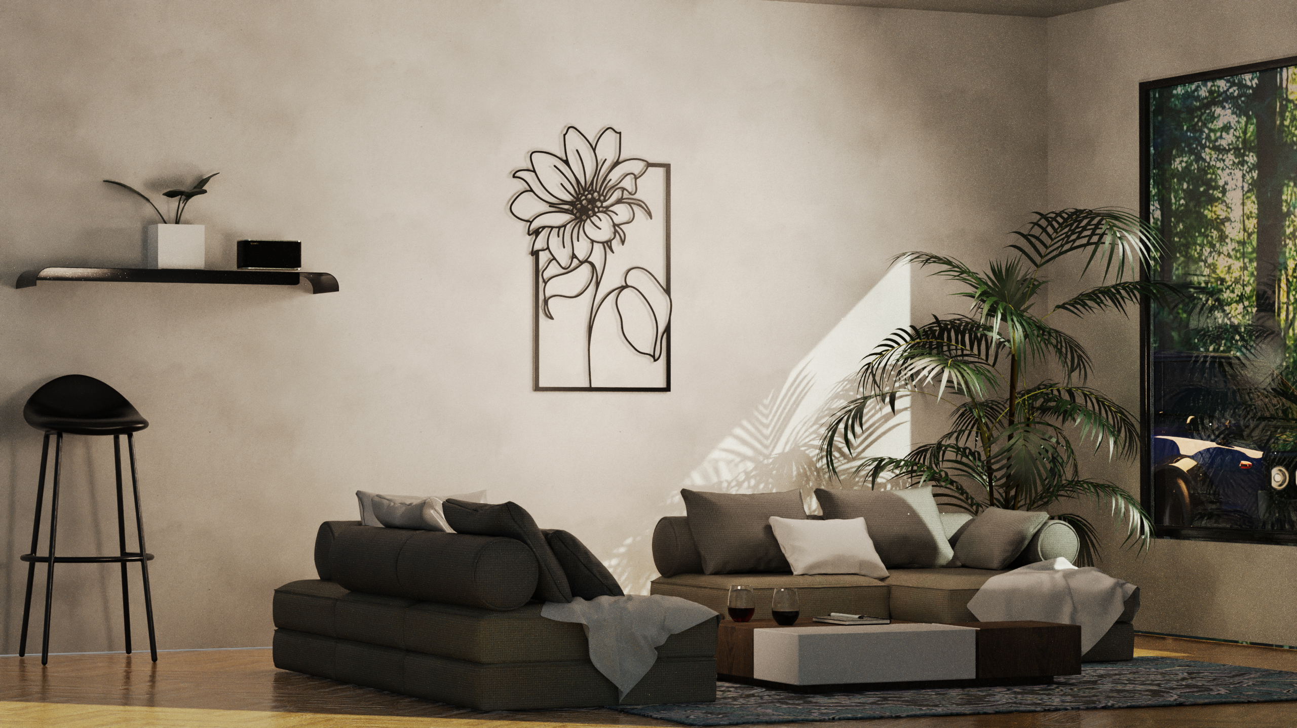 פריט עיצוב ייחודי מאלומיניום איכותי קל משקל בחיתוך לייזר, המשלב דגם אלגנטי ומדויק של פרח החרצית. הקווים העדינים והפרטים המוקפדים יוצרים מראה רומנטי ומודרני, עם אפשרות להוספת תאורת LED להדגשת העיצוב ויצירת עומק.