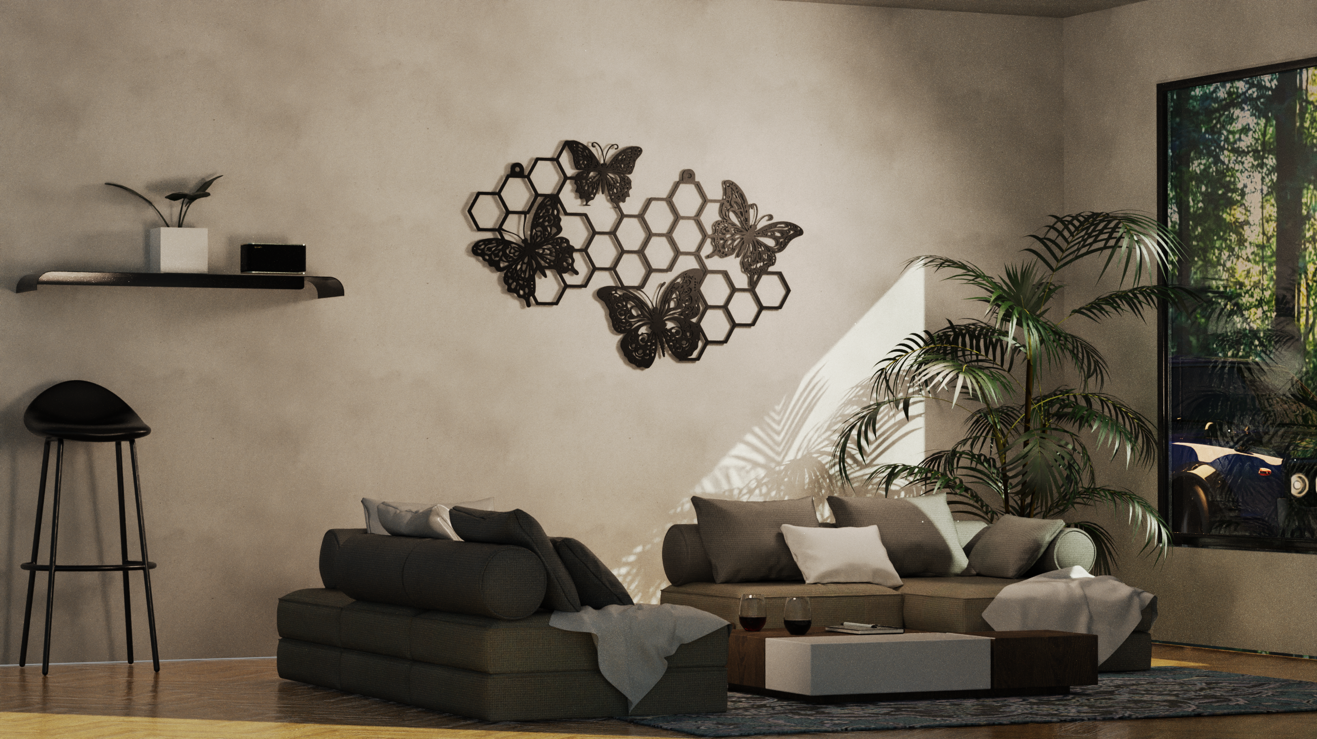 תמונת מתכת מאלומיניום איכותי קל משקל בעיצוב 4 פרפרים, בעבודת חיתוך לייזר מדויקת עם פרטים חדים ומוקפדים. הקווים הנקיים והעיצוב המודרני משתלבים בקלות בחללים שונים - סלון, חדר שינה או משרד. ניתן להוסיף תאורת LED אחורית ליצירת עומק ואווירה מיוחדת.